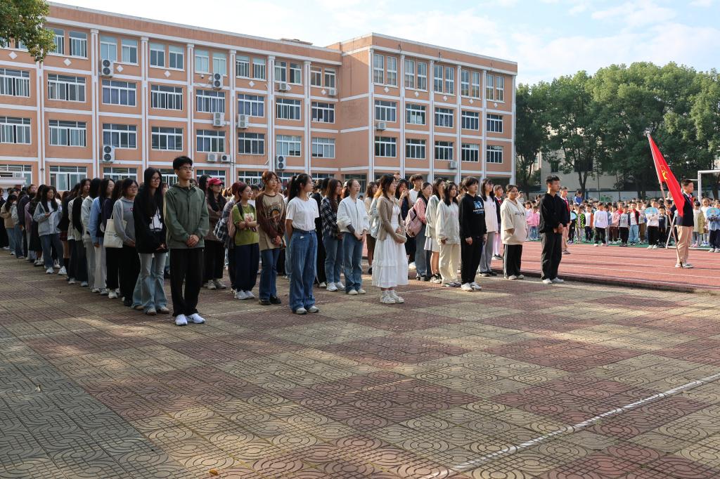 周一早晨7:50,22级小教全体员工乘坐大巴车来到见习学校——大洋小学(南校区),开启见习活动第一项——观摩升旗仪式。